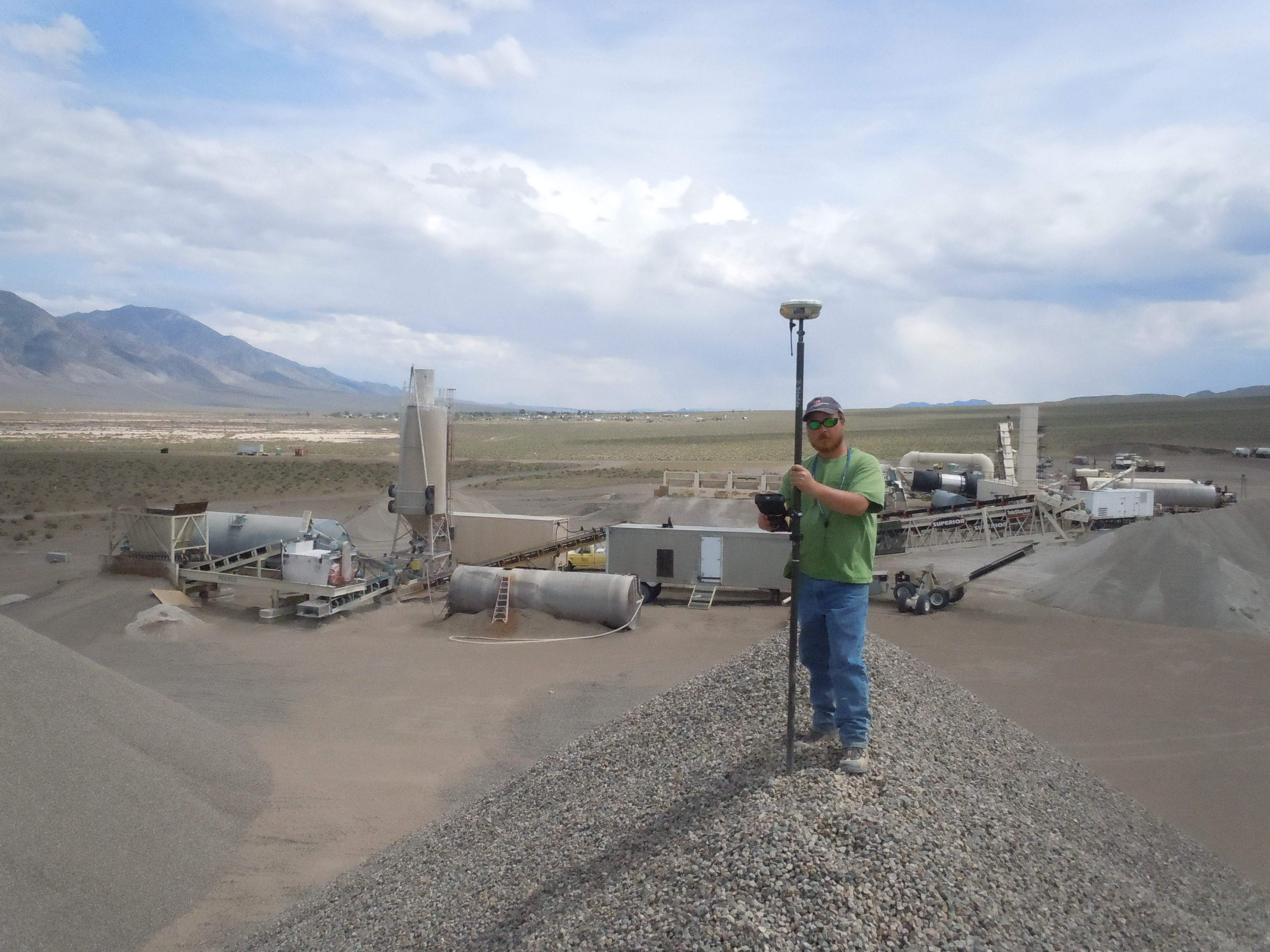 Battle Born Ventures, LLC has entered into a contract with A&K Earthmovers to conduct a survey of aggregate stockpiles produced at an aggregate pit Northwest of Mina, Nevada. Each stockpile footprint and height will be surveyed to determine the estimated volume of stockpiled materials using the average end area method or the volume of a cone formula. The work will involve survey calculations, field surveying, data reduction, letter preparation, and project coordination.